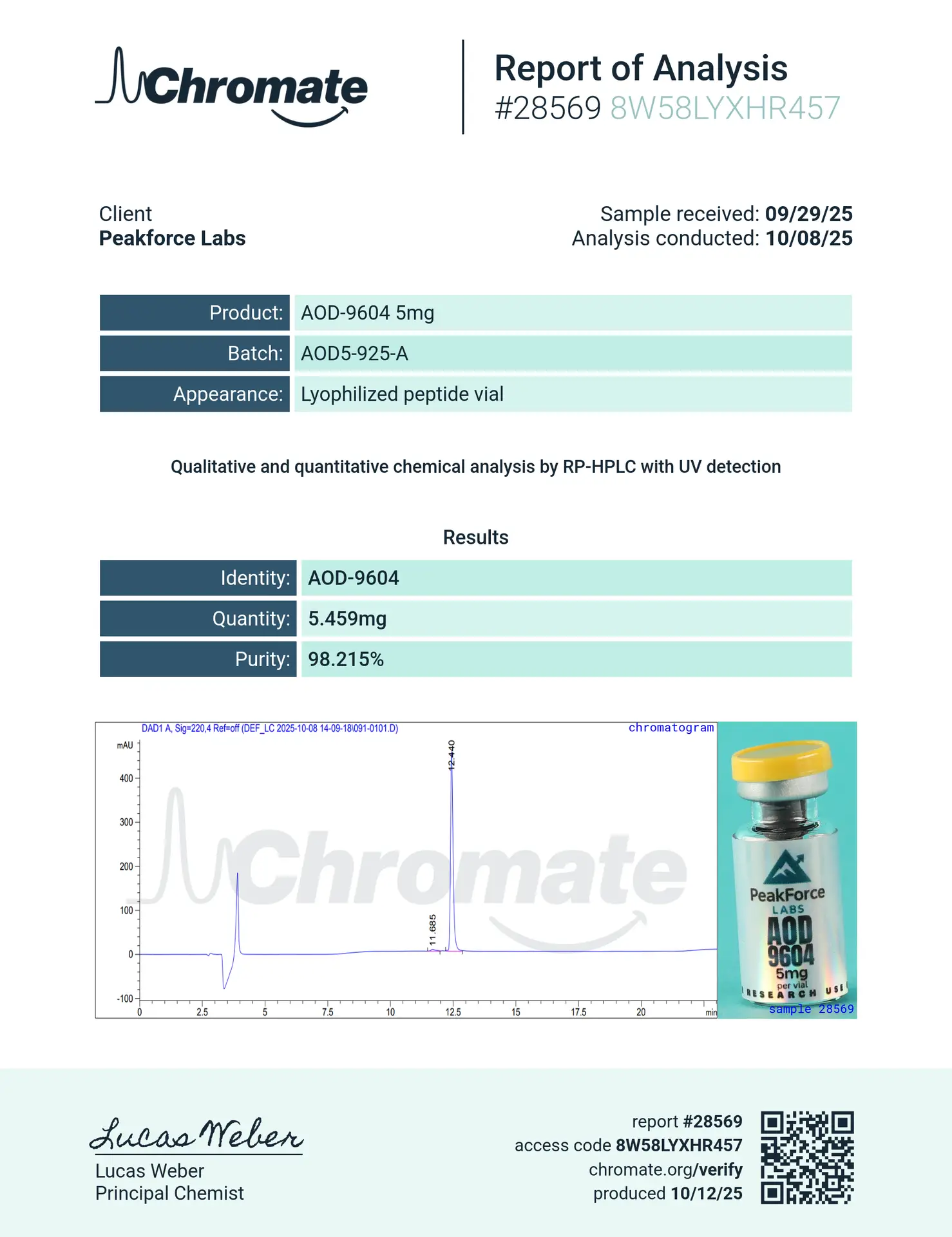 At PeakForce Labs, quality is our cornerstone. This distinctive lyophilized powder is the result of state-of-the-art processing, ensuring stability and ease of reconstitution. Every batch is tested in the USA to guarantee a minimum of 99% purity, ensuring your data remains uncompromised by contaminants. Whether your laboratory is focused on obesity models, metabolic syndrome, or skeletal system recovery, AOD-9604 5mg provides a convenient, high-concentration solution for multi-faceted experimental designs.