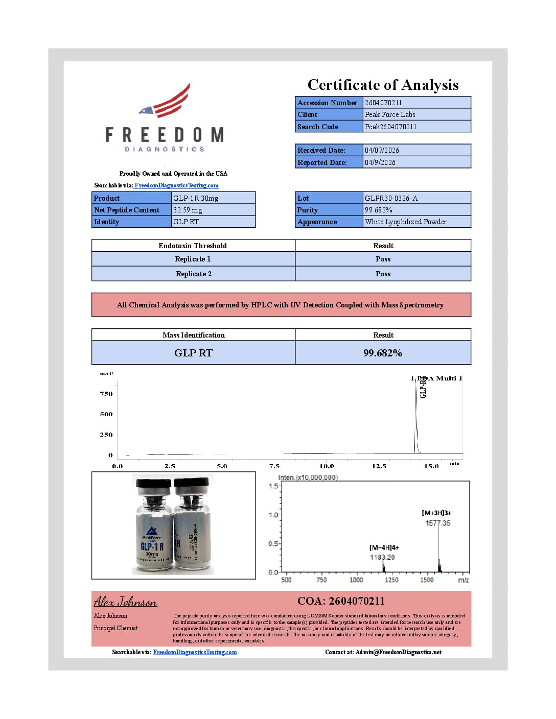 Independently verified at ≥99% purity via LC-MS/MS testing