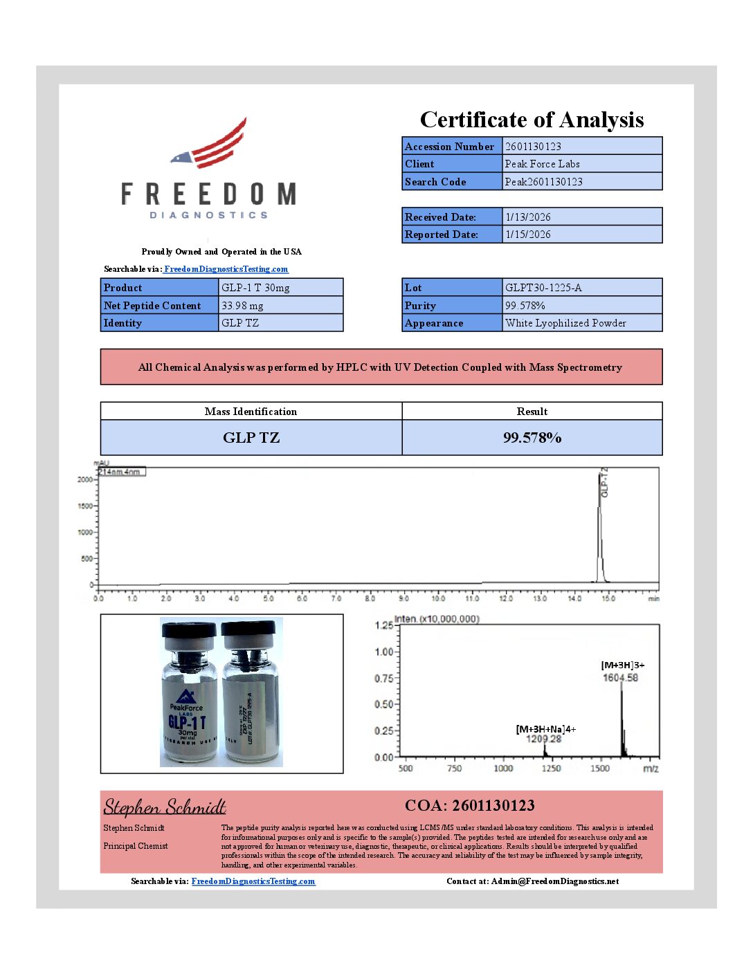 Independently verified at ≥99% purity via LC-MS/MS testing