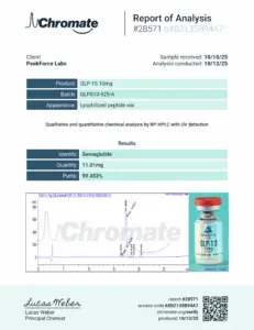 At PeakForce Labs, quality is our cornerstone. This distinctive lyophilized powder is the result of state-of-the-art processing, ensuring stability and ease of reconstitution for your precise experimental needs. Every batch is tested in the USA to guarantee a minimum of 99% purity, ensuring your data remains uncompromised by contaminants. Whether your laboratory is focused on senescence models, circadian rhythm research, or oncology simulations, Epithalon 10mg provides a high-concentration solution for multi-faceted experimental designs.