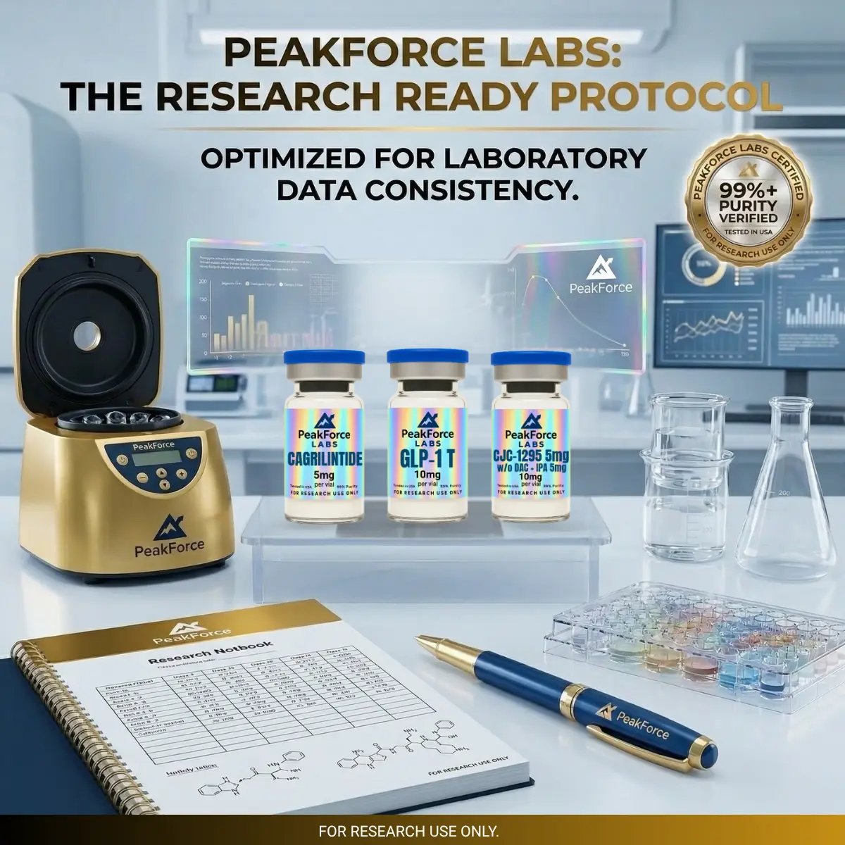 Elevate the precision of your metabolic investigations with The Recomposition Stack from PeakForce Labs. This expertly curated stack is engineered for researchers requiring high-fidelity data consistency when observing the preservation of lean muscle tissue in cellular models during intensive receptor signaling and metabolic pathway analysis.