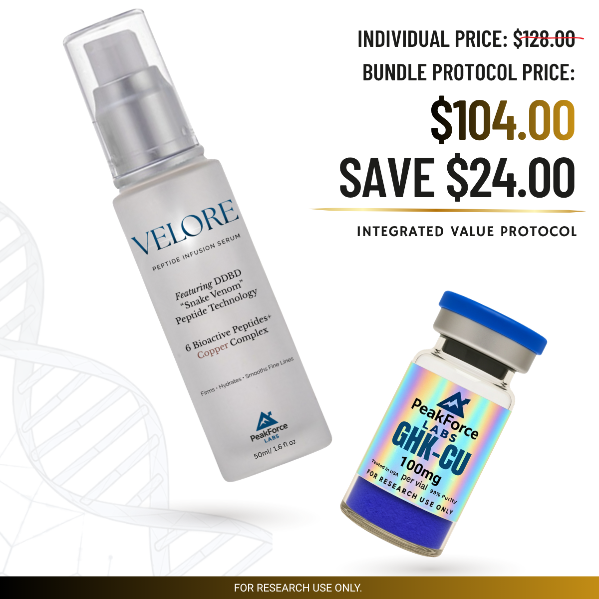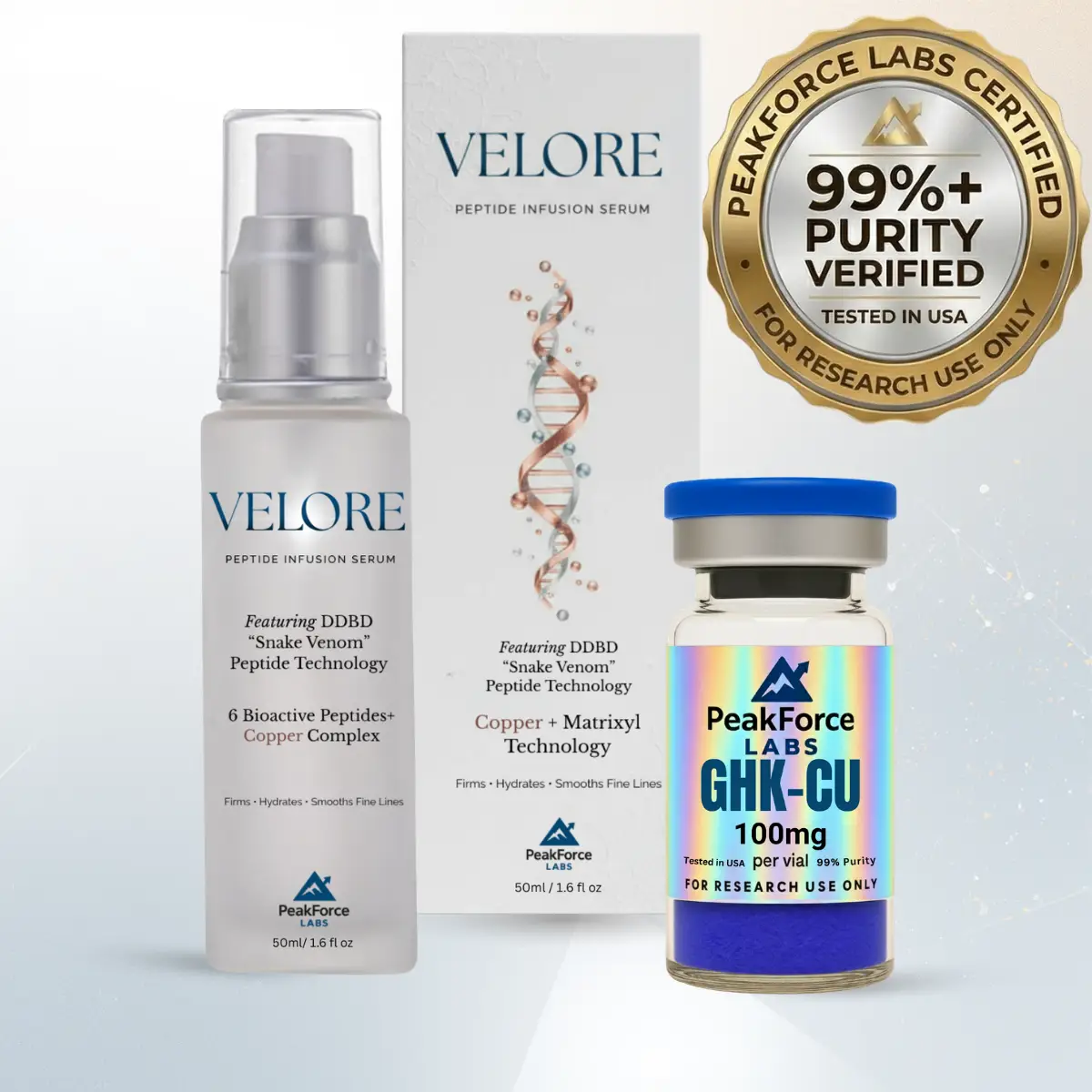 Components: VELORE Peptide Infusion Serum (50ml) + GHK-Cu (100mg)